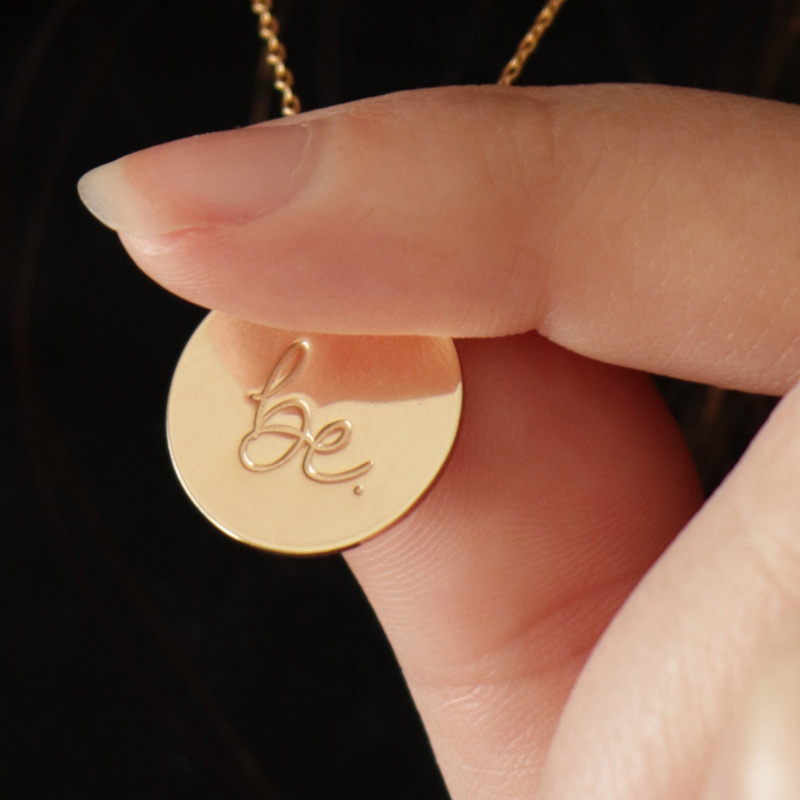 Choose from our 12.7mm or 15.9mm 14k gold filled disc in our own uniquely designed font to remind you to be who God created you to be.